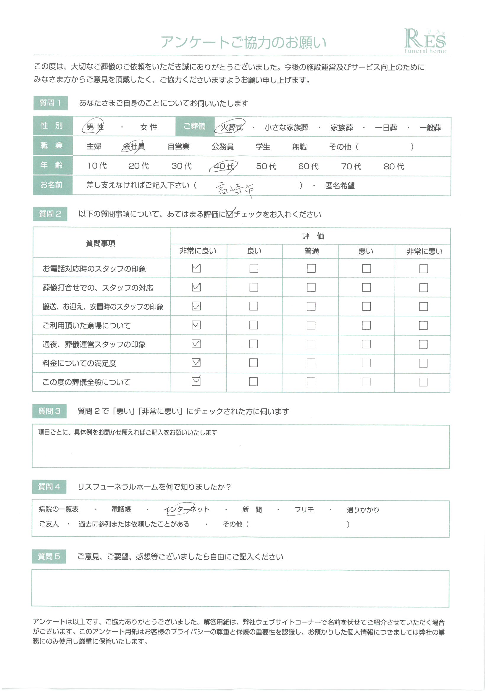 みどり市 Y様 家族葬 (4.5/5) X Facebook はてブ LINE Pinterest コピー 2020.12.082020.12.21 親切にして頂きありがとうございました。故人もやすらかに旅立てたと思います。