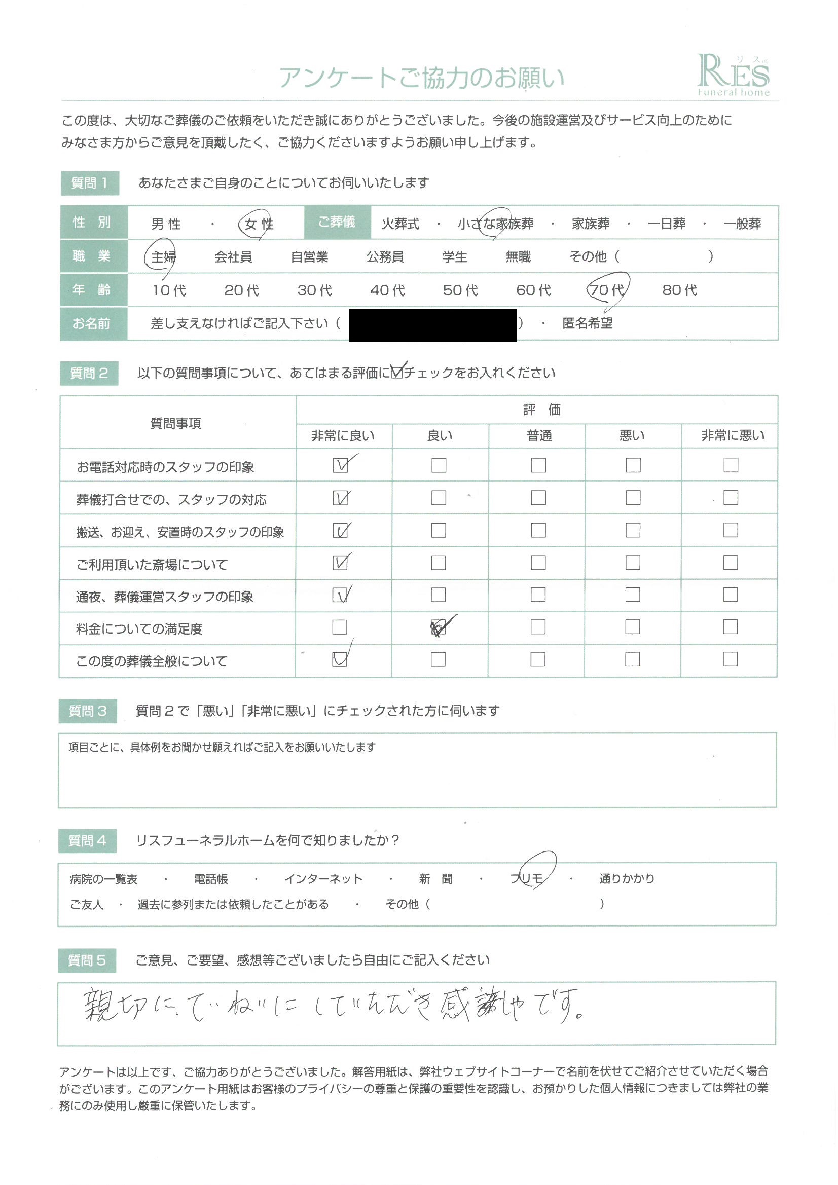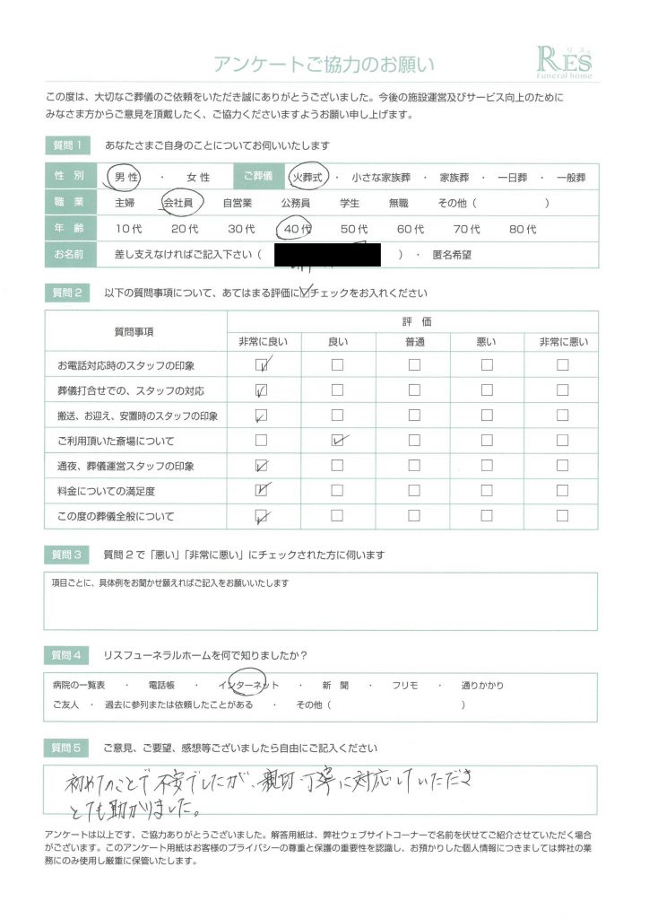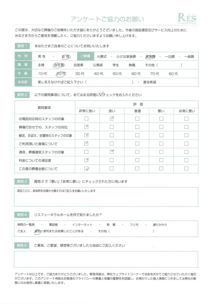 お客様の声 高崎市 K様 小さな家族葬