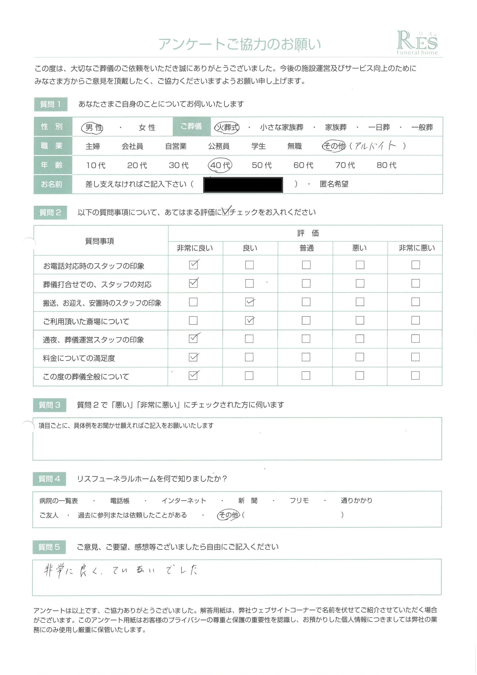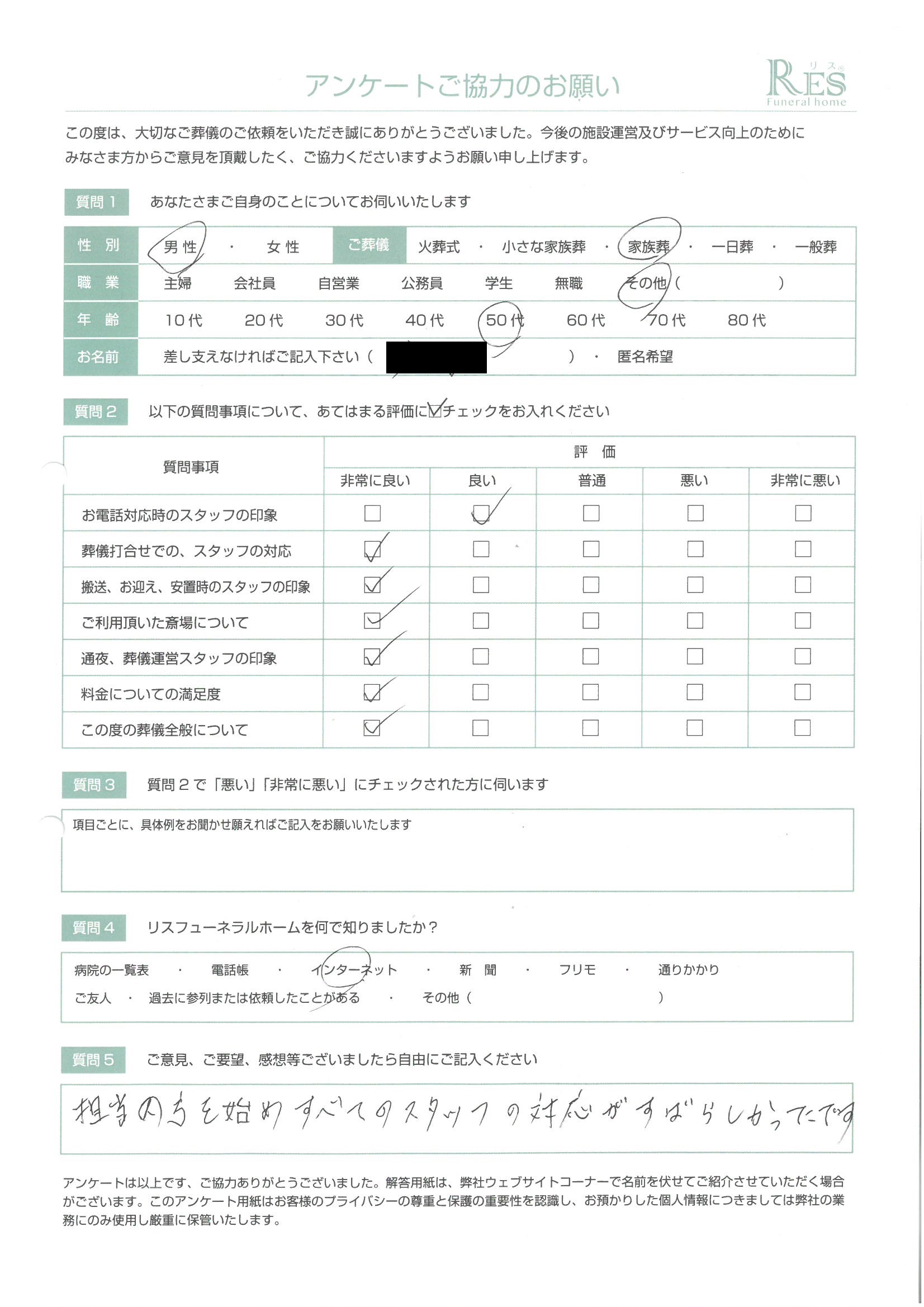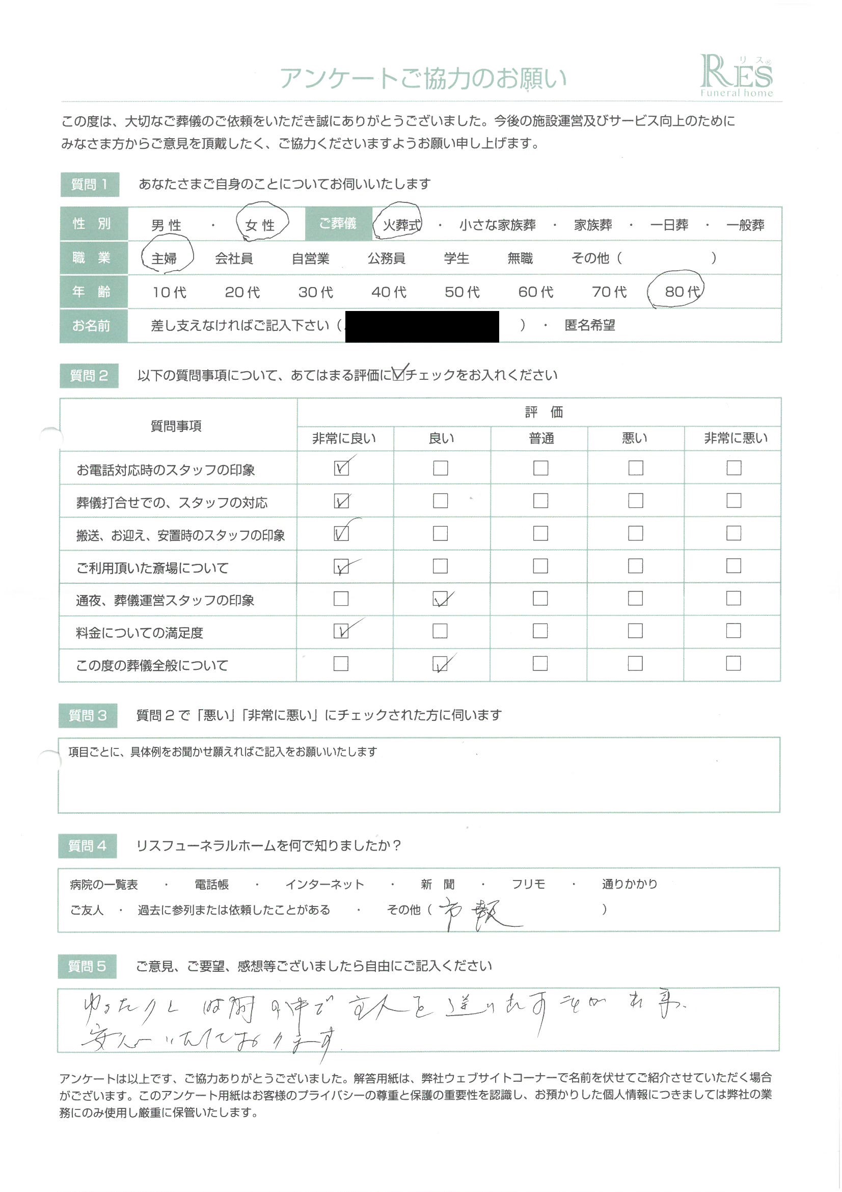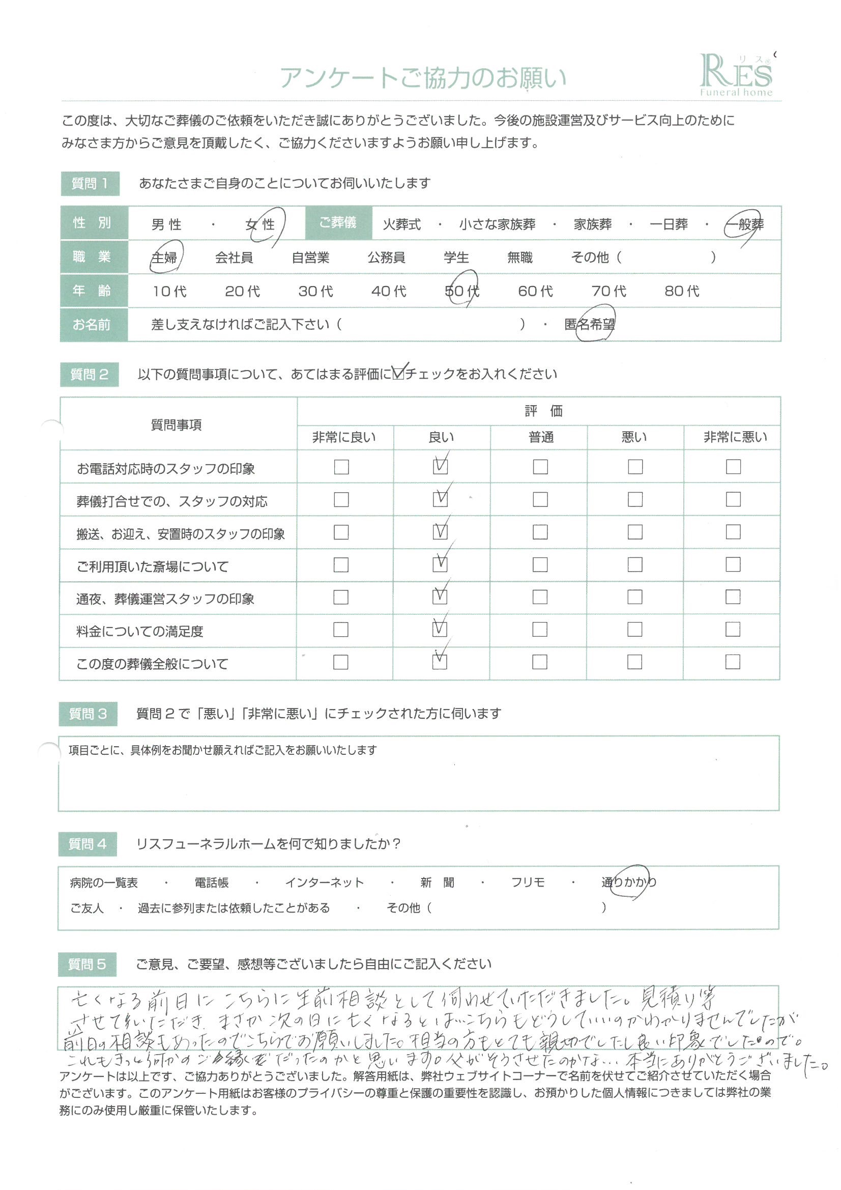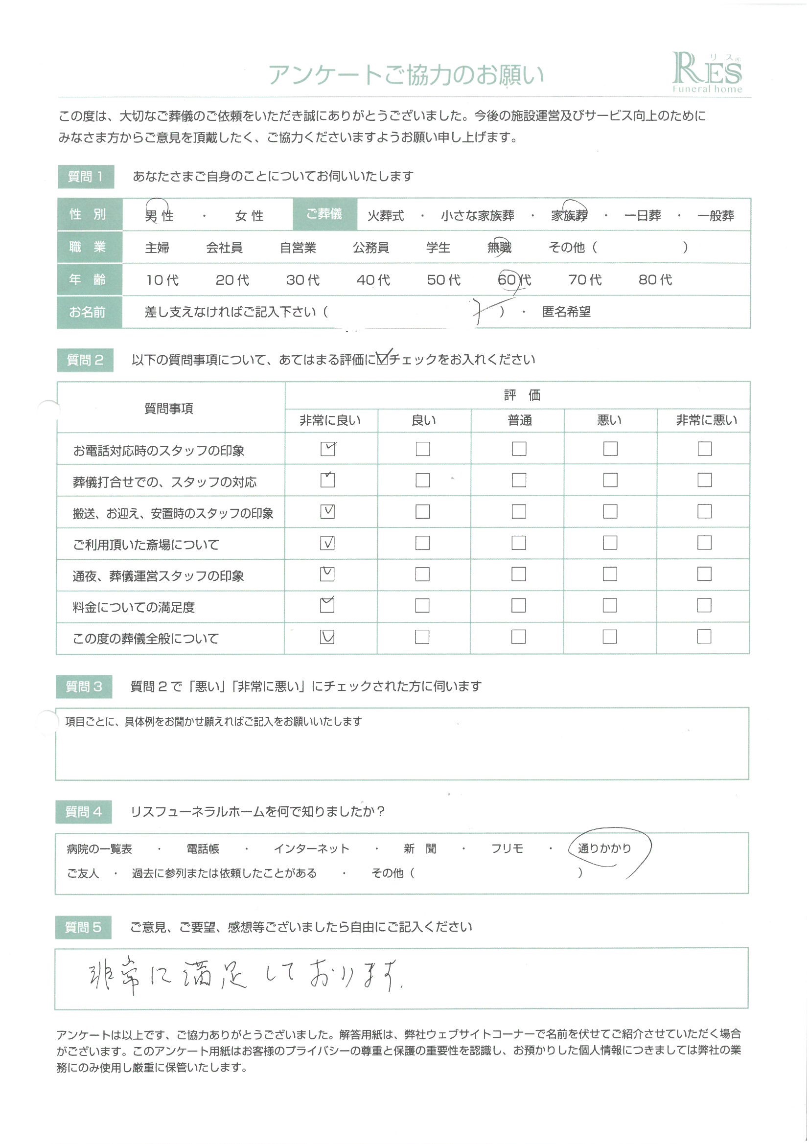 お客様の声 高崎市 Y様 家族葬