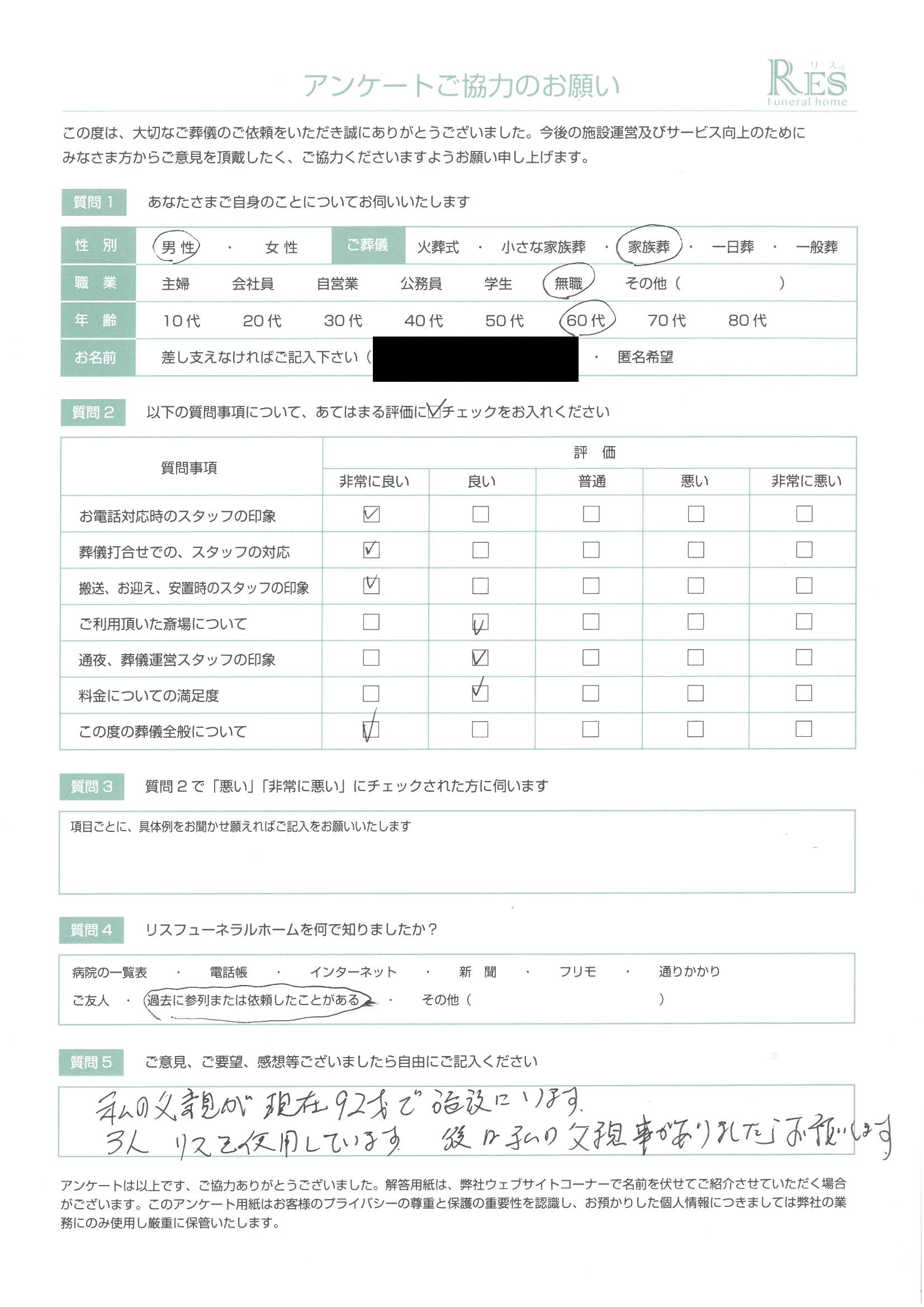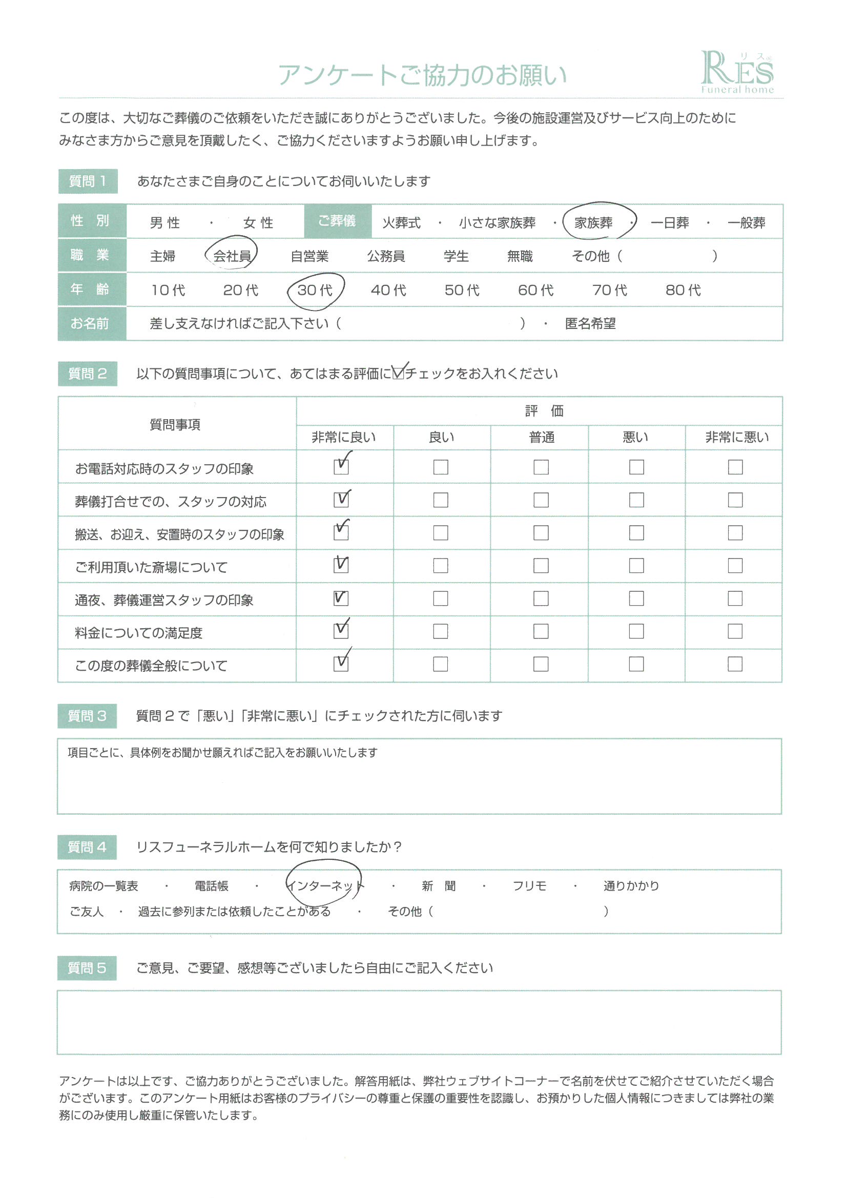 今回とても満足した葬儀が出来たのではないかと思っています佐々木さんの対応もハキハキわかりやすく気持ち良かったです ありがとうございました。