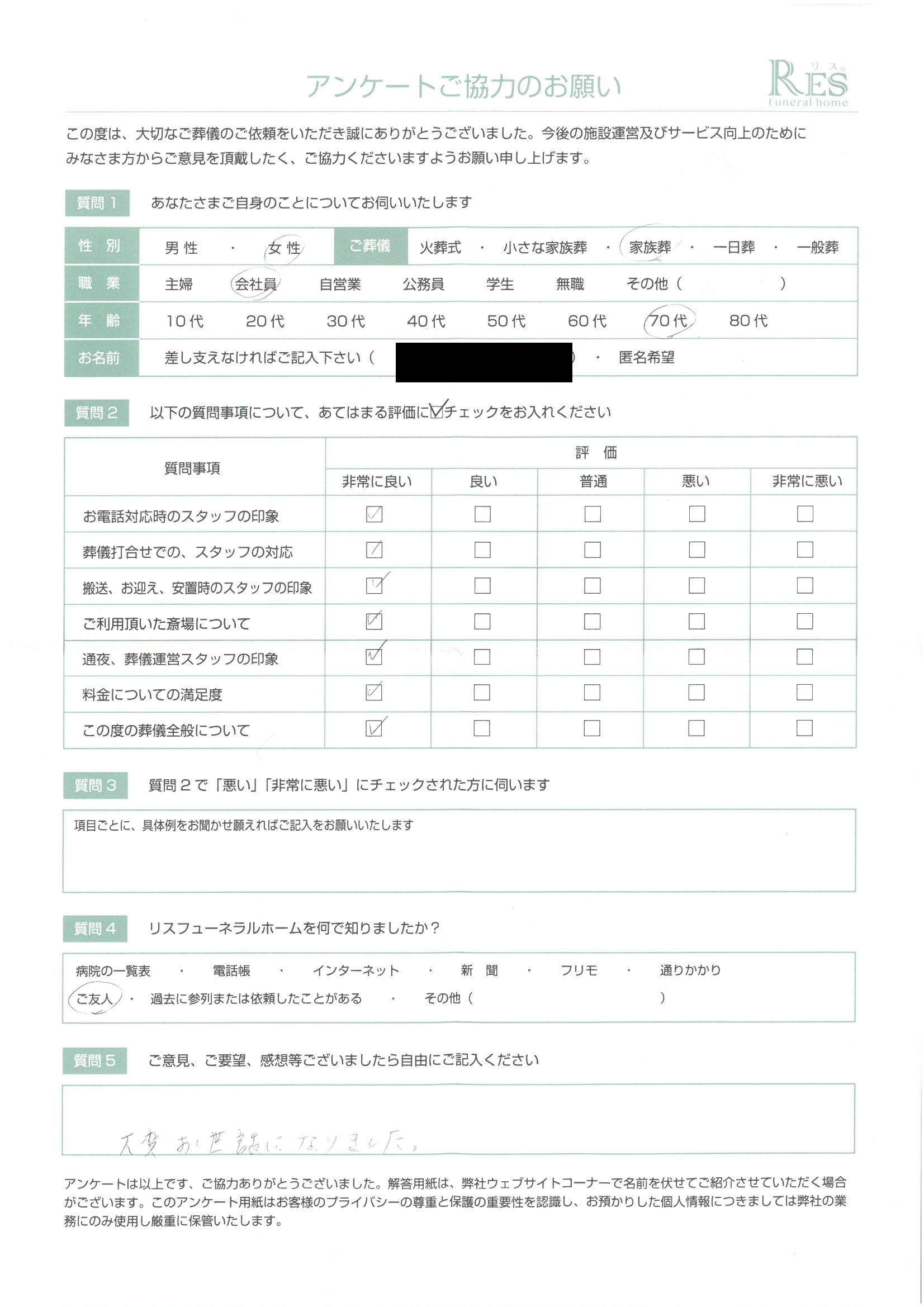 横浜市 S様 小さな家族葬
