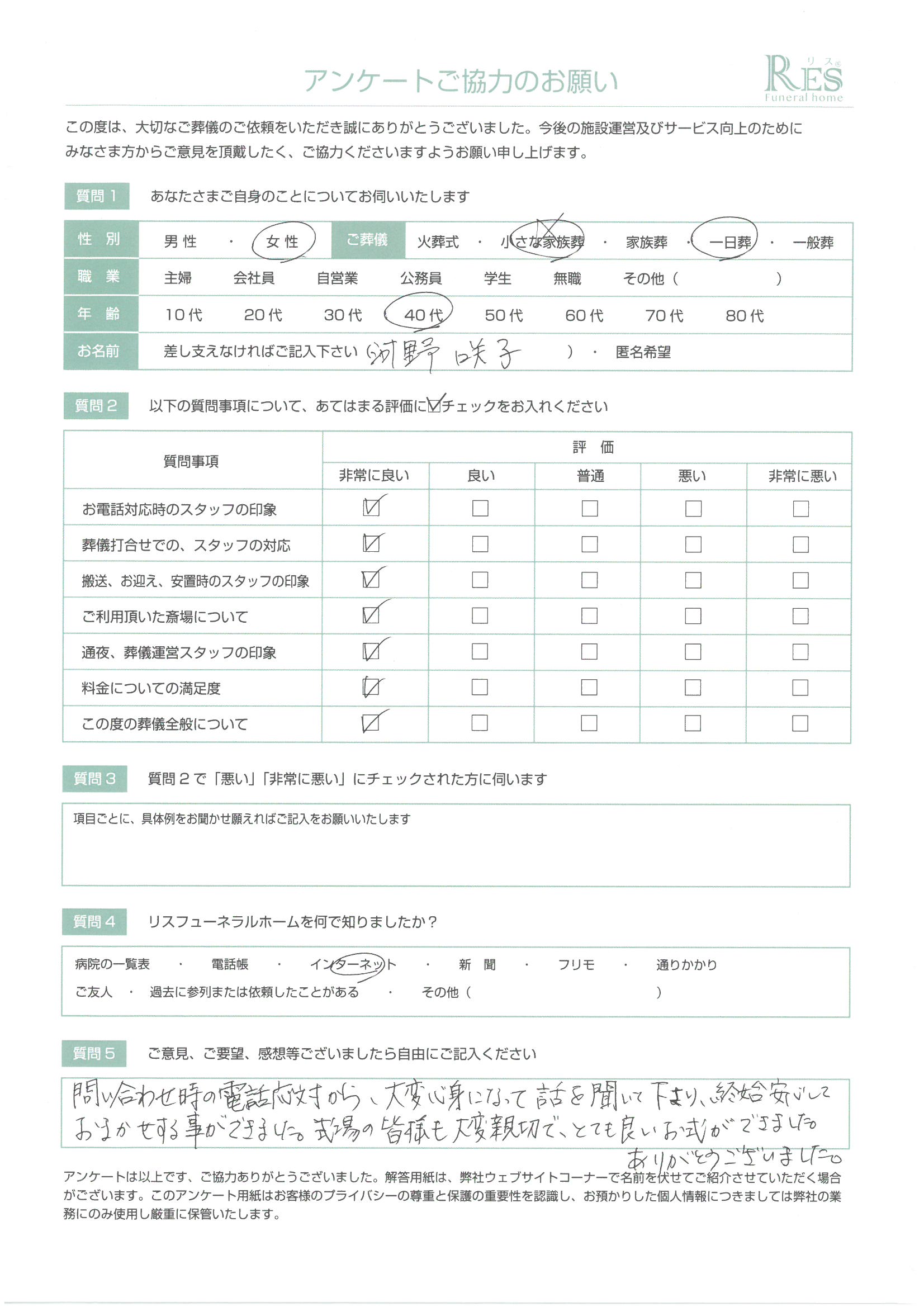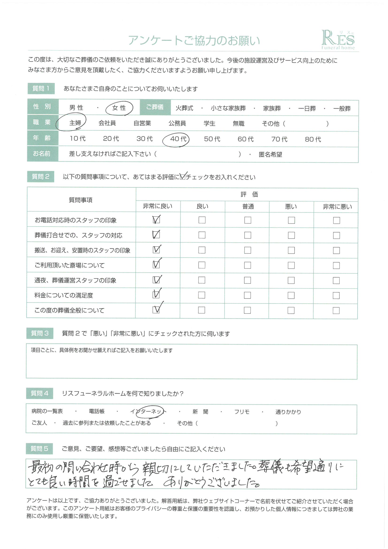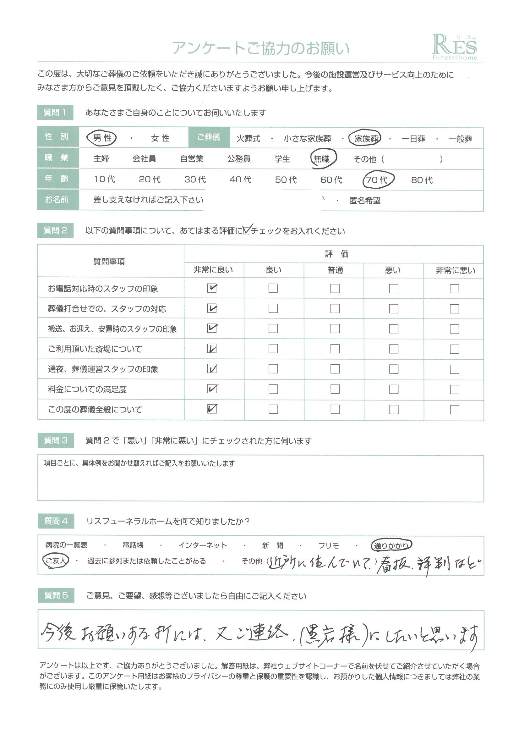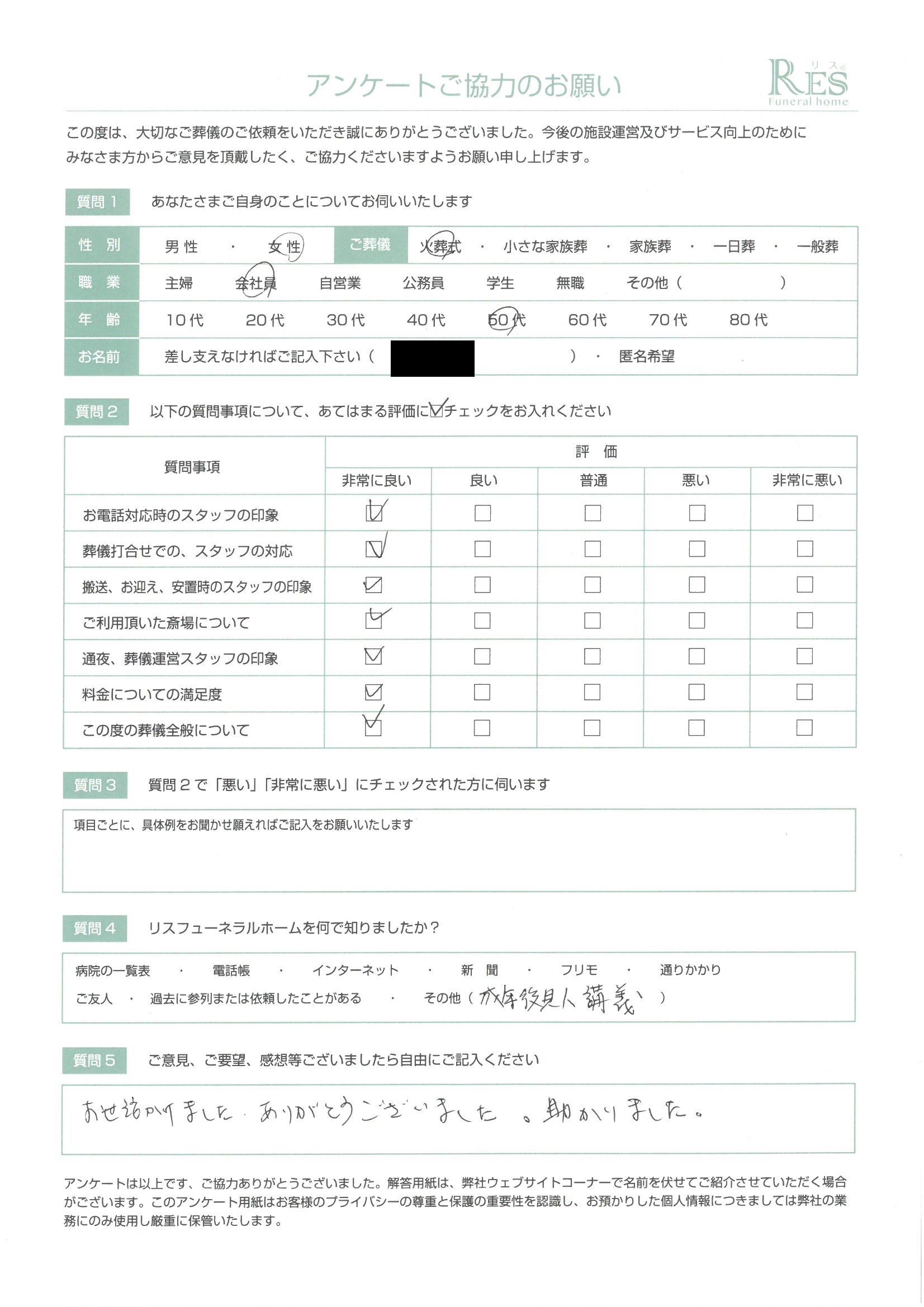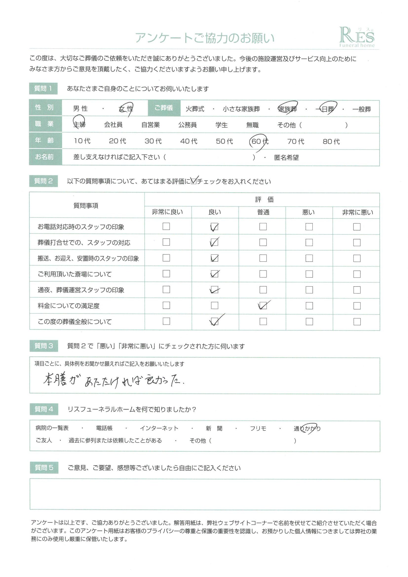 お客様の声 高崎市 A様 家族葬(一日葬)