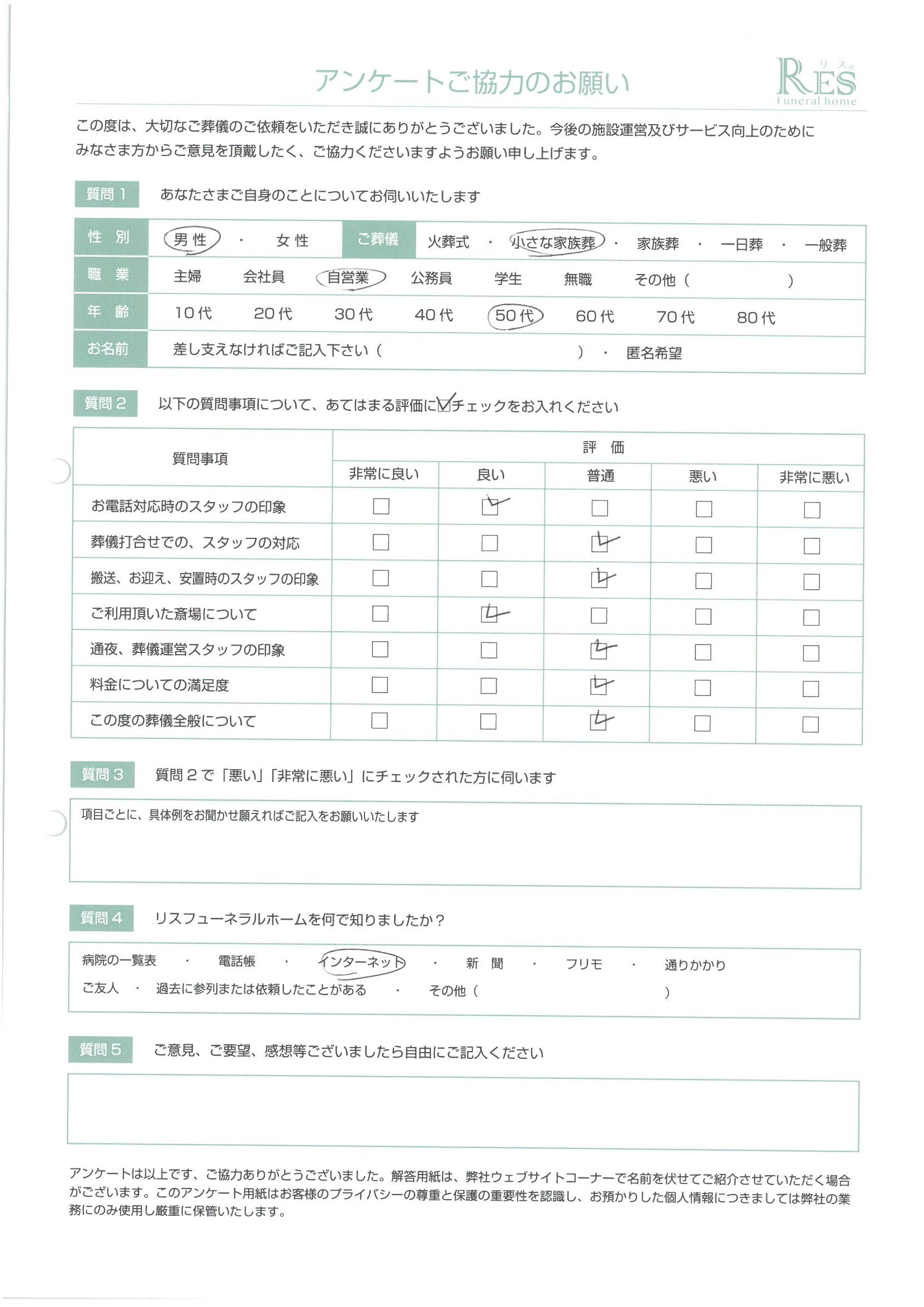 お客様の声 高崎市 S様 家族葬(一日葬)