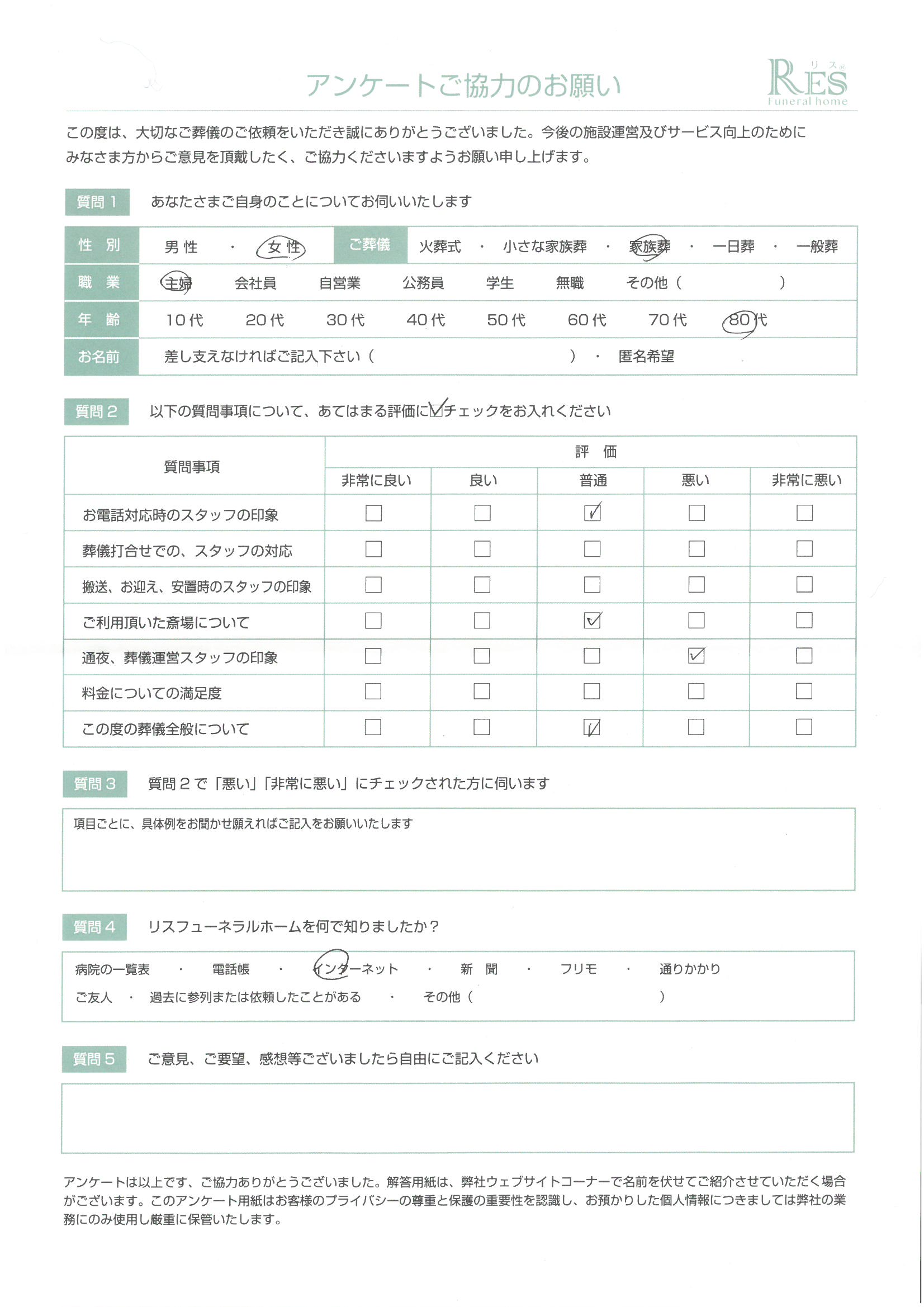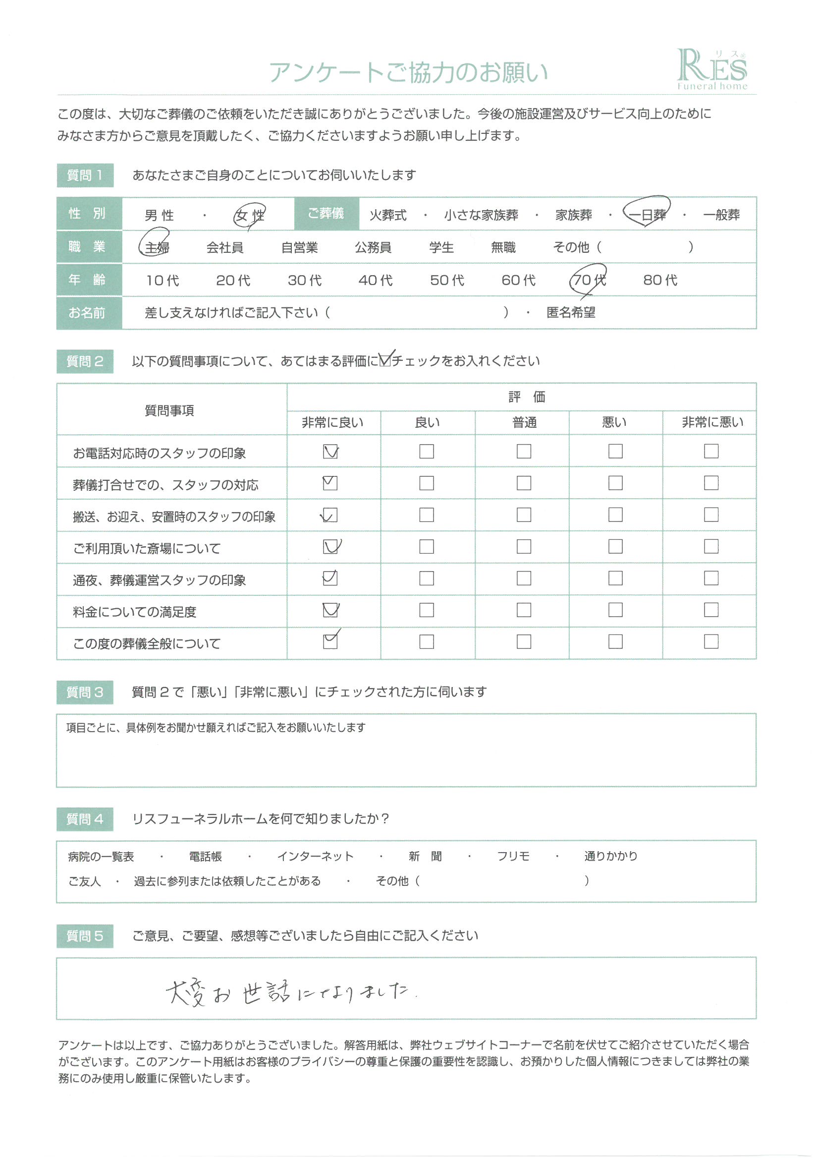 お客様の声 高崎市 T様 小さな家族葬(一日葬)