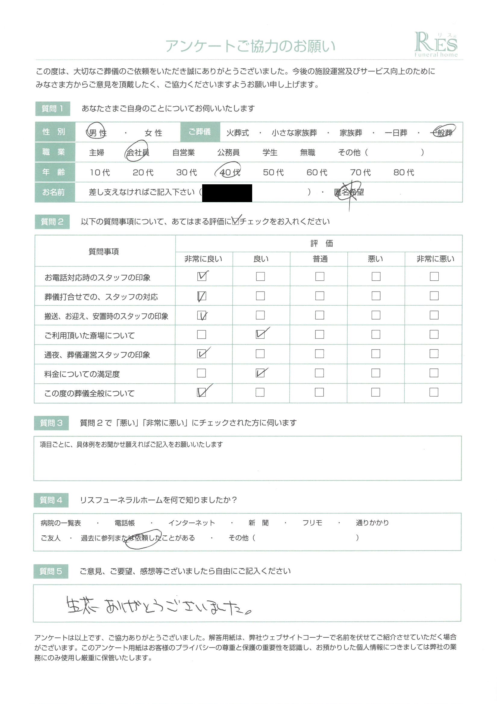 お客様の声 高崎市 I様 家族葬(一日葬)