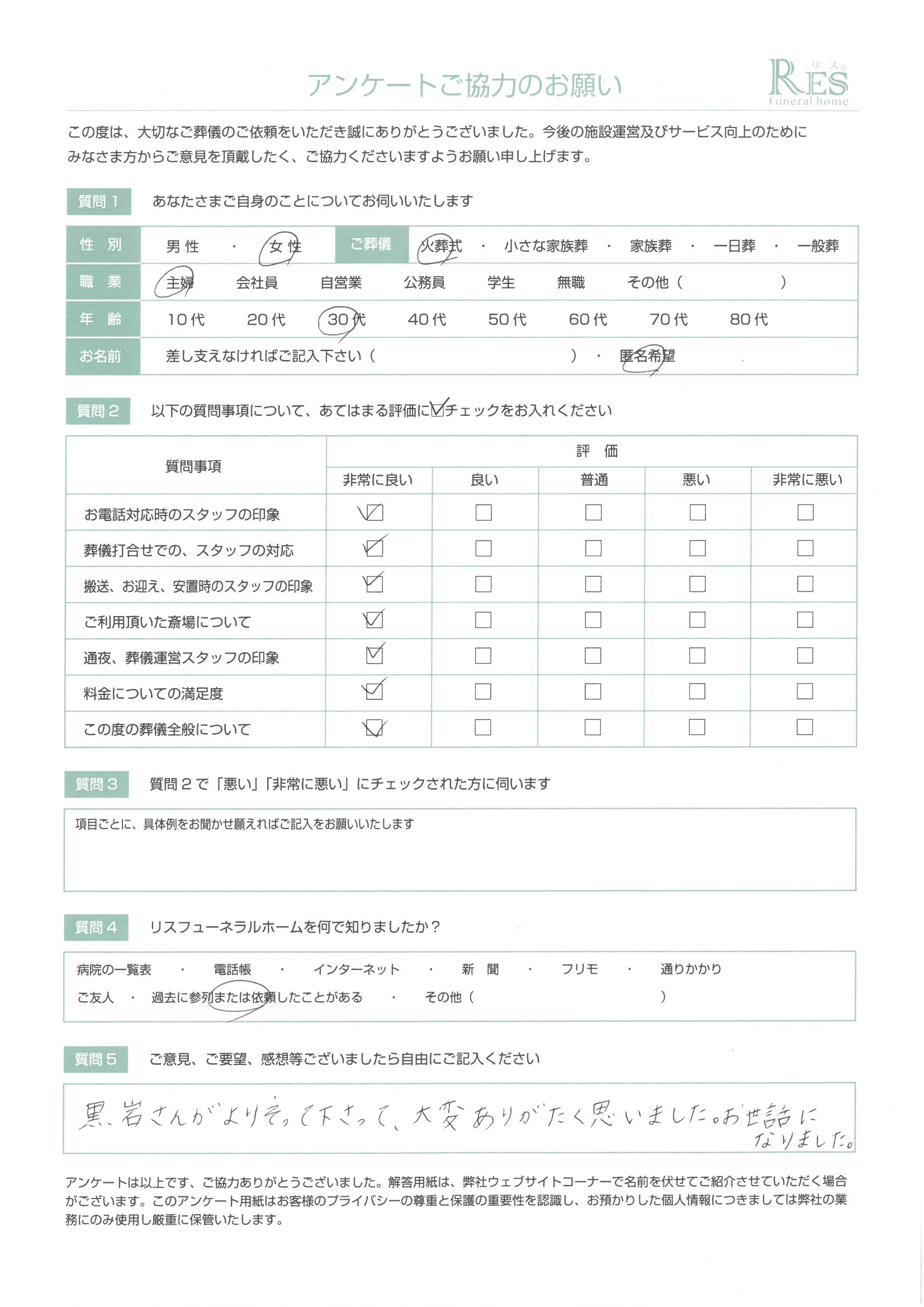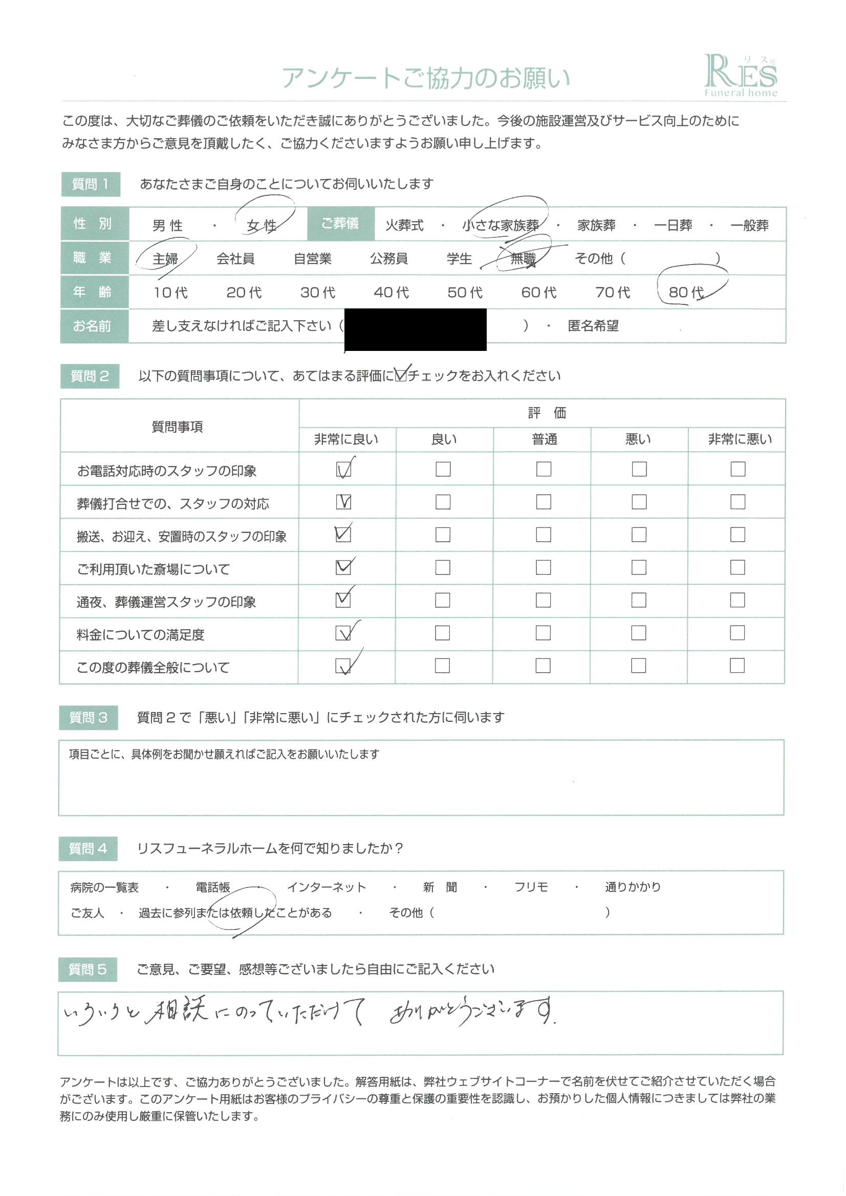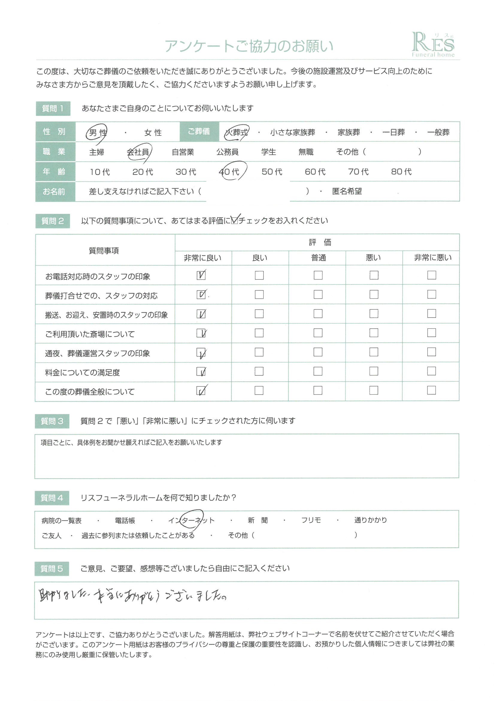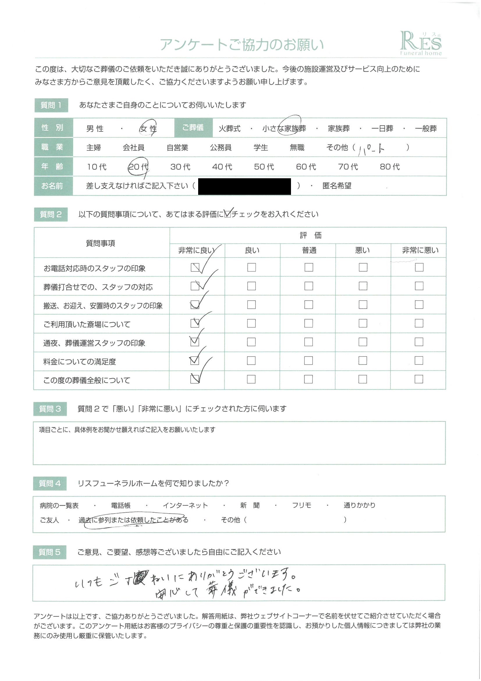 お客様の声 高崎市 K様 家族葬(一日葬)