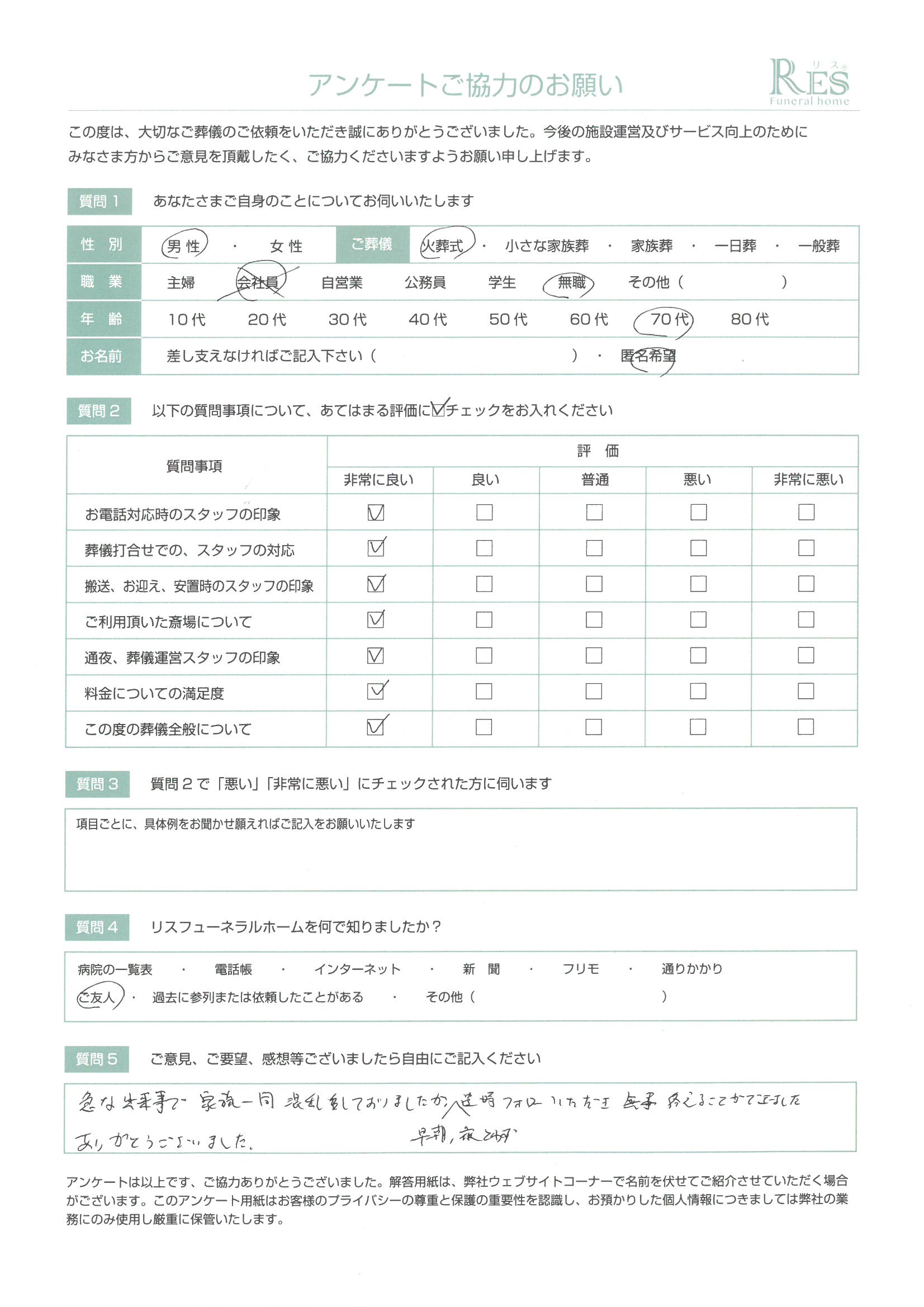 急な出来事で家族一同混乱しておりましたが、早朝、夜問わず随時フォローいただき 無事終えることができました ありがとうございました