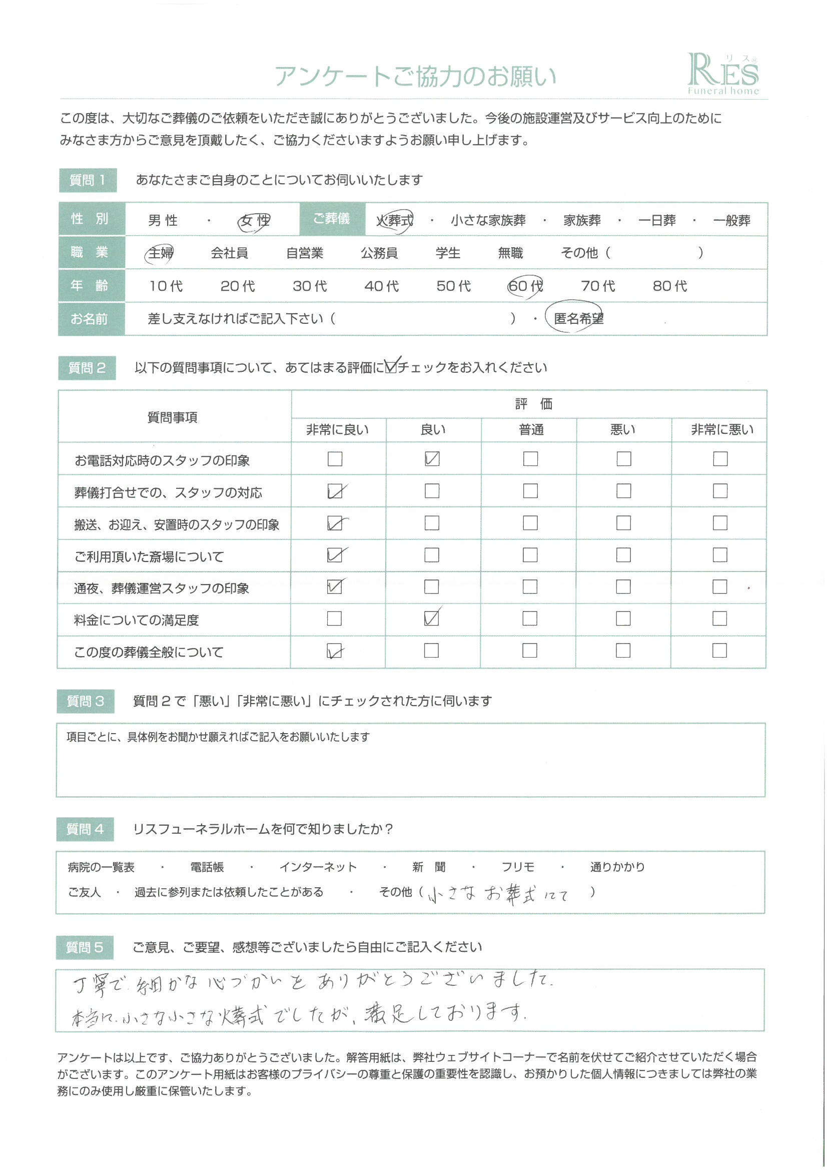 喪主のご長女様より 親切にありがとうございました、次は母の際にまた黒岩さんにお願いします。お話いただき、担当者としてなによりでございます。
