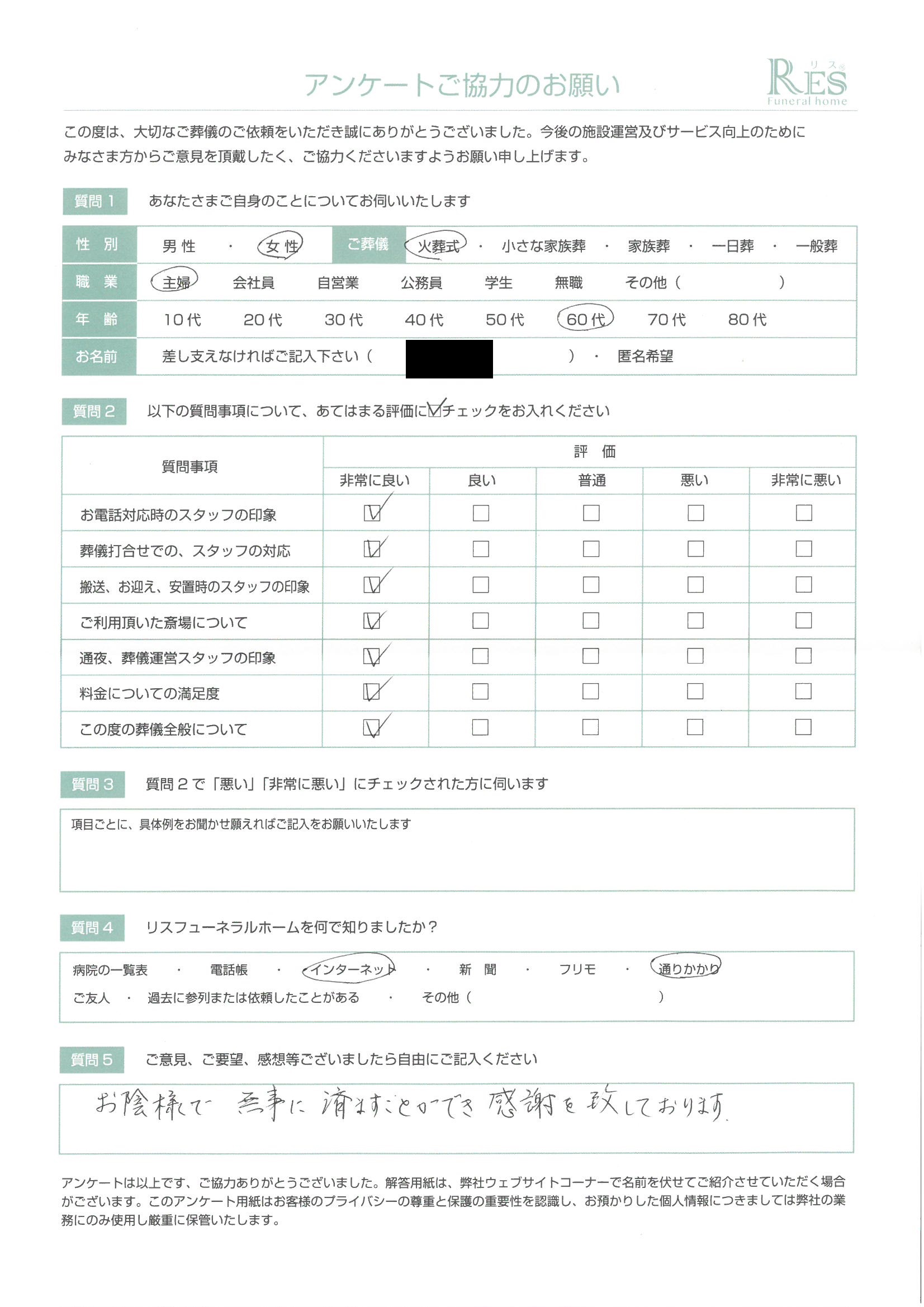 お陰様で無事に済ますことができ感謝を致しております。