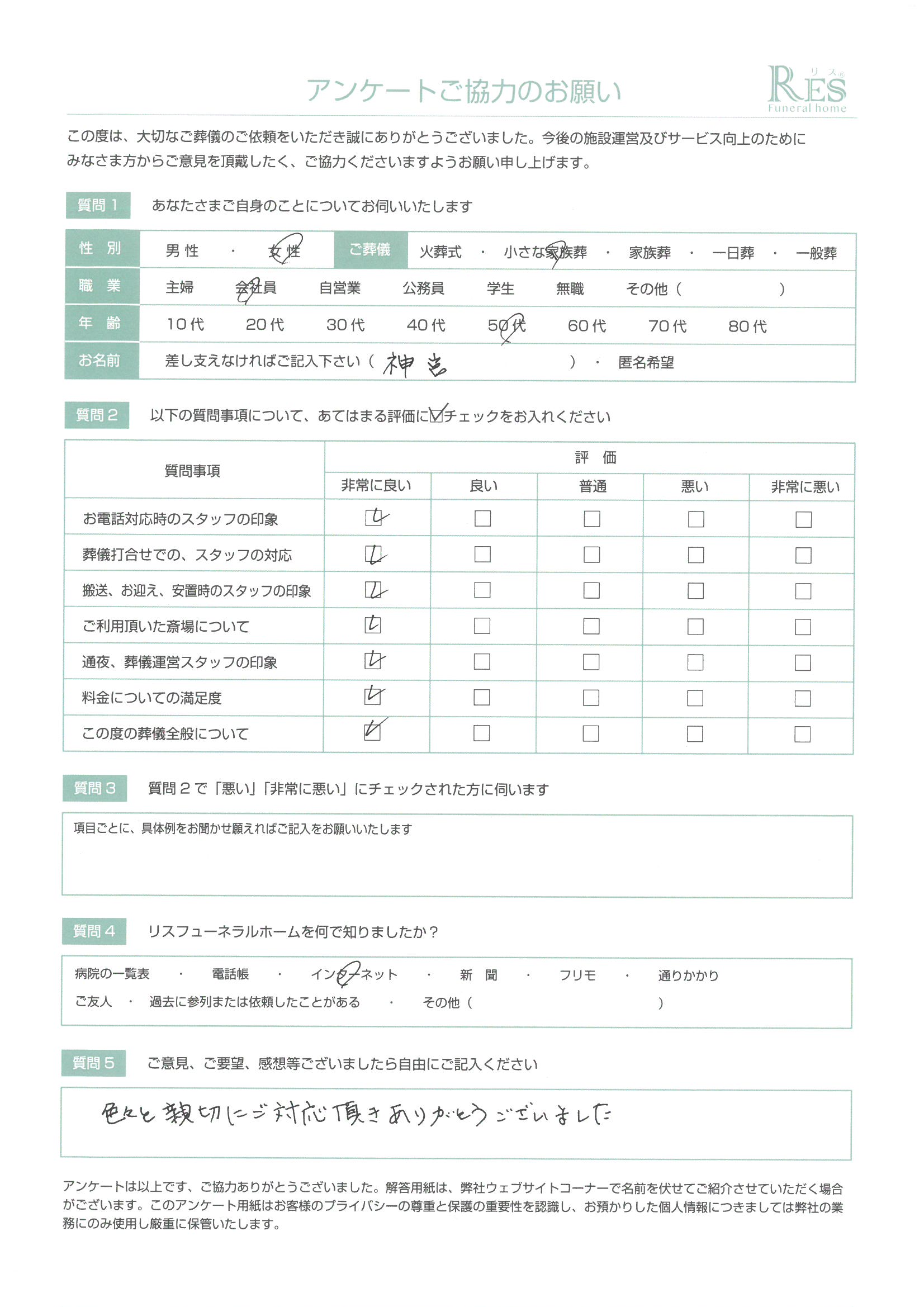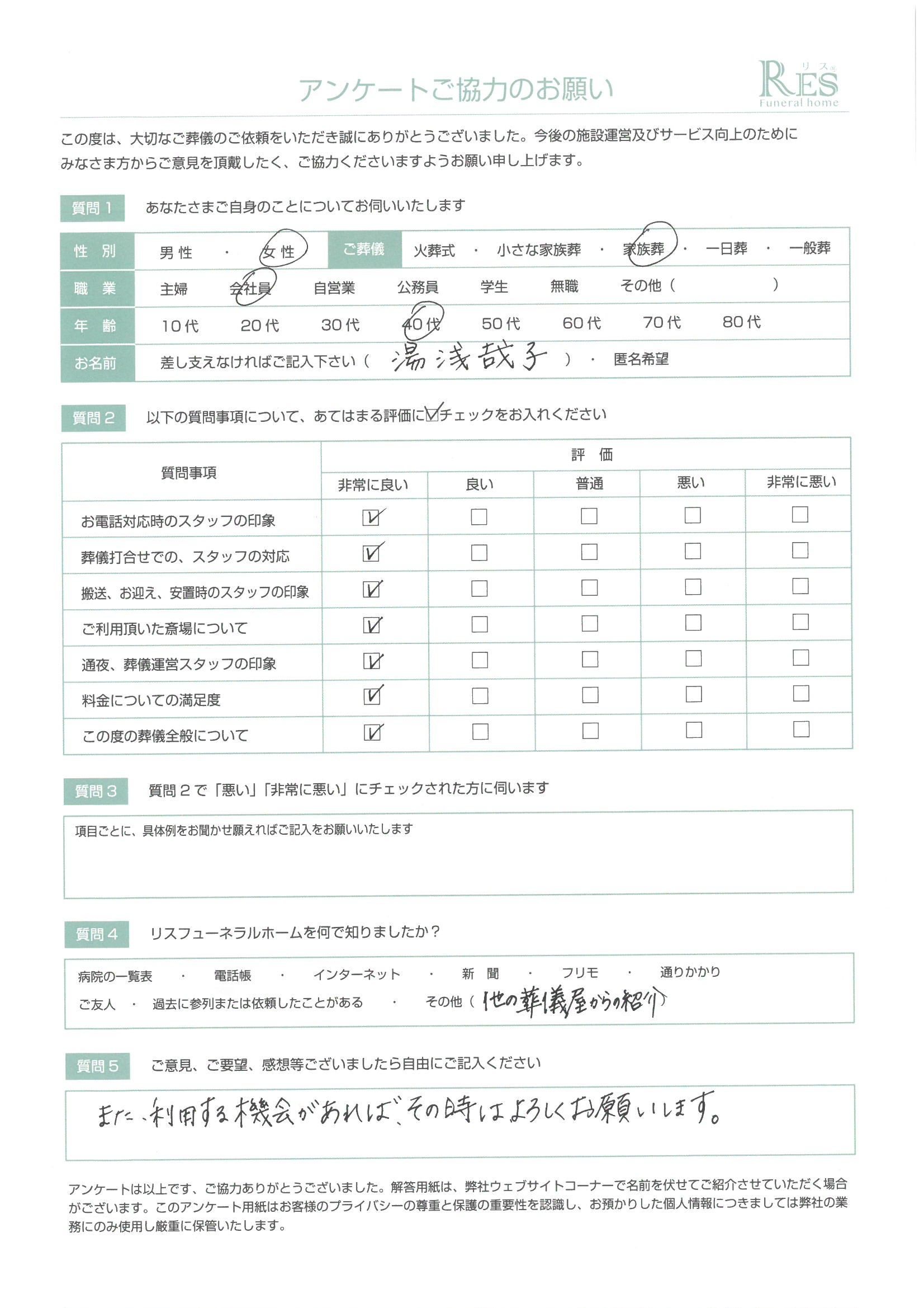 また、利用する機会があれば、その時はよろしくお願いします。