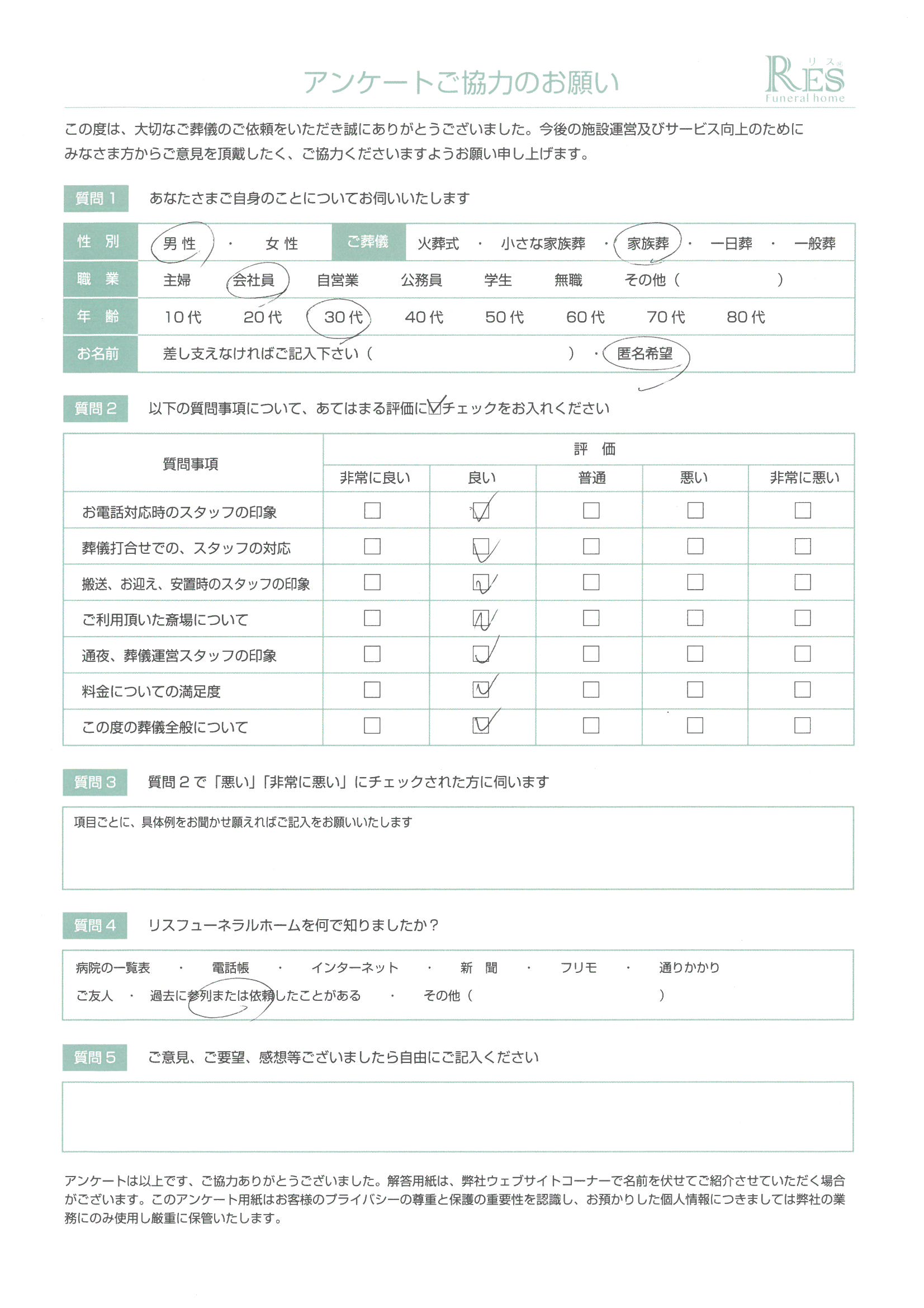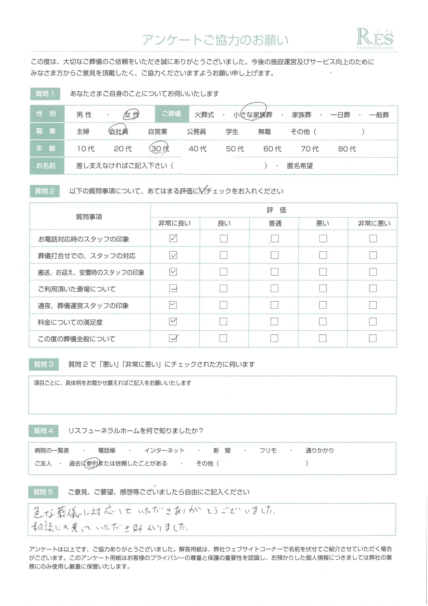 お客様の声 高崎市 S家 家族葬(一日葬)