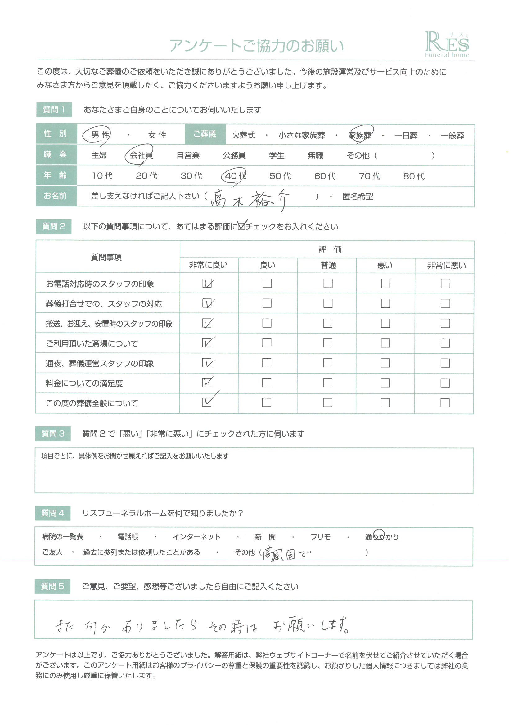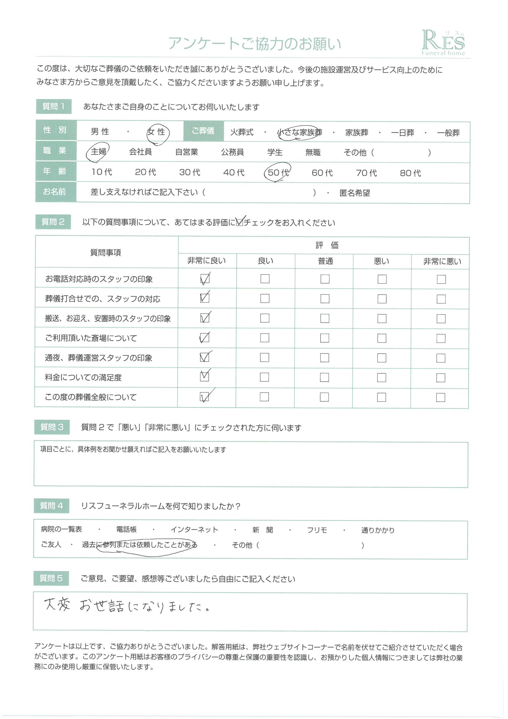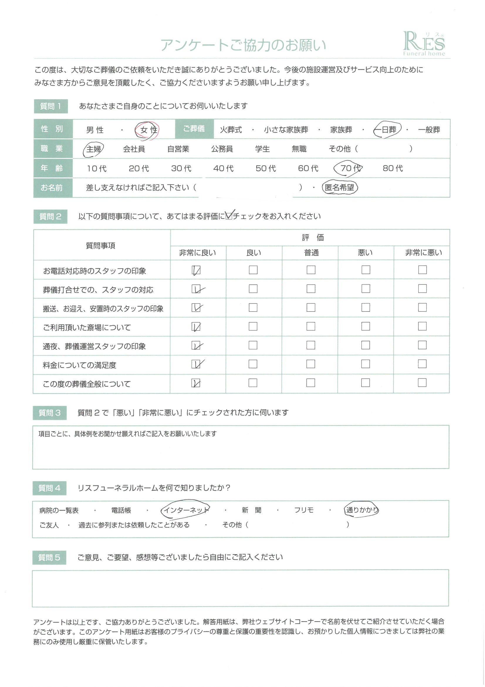 お客様の声 高崎市 T様 家族葬(一日葬)