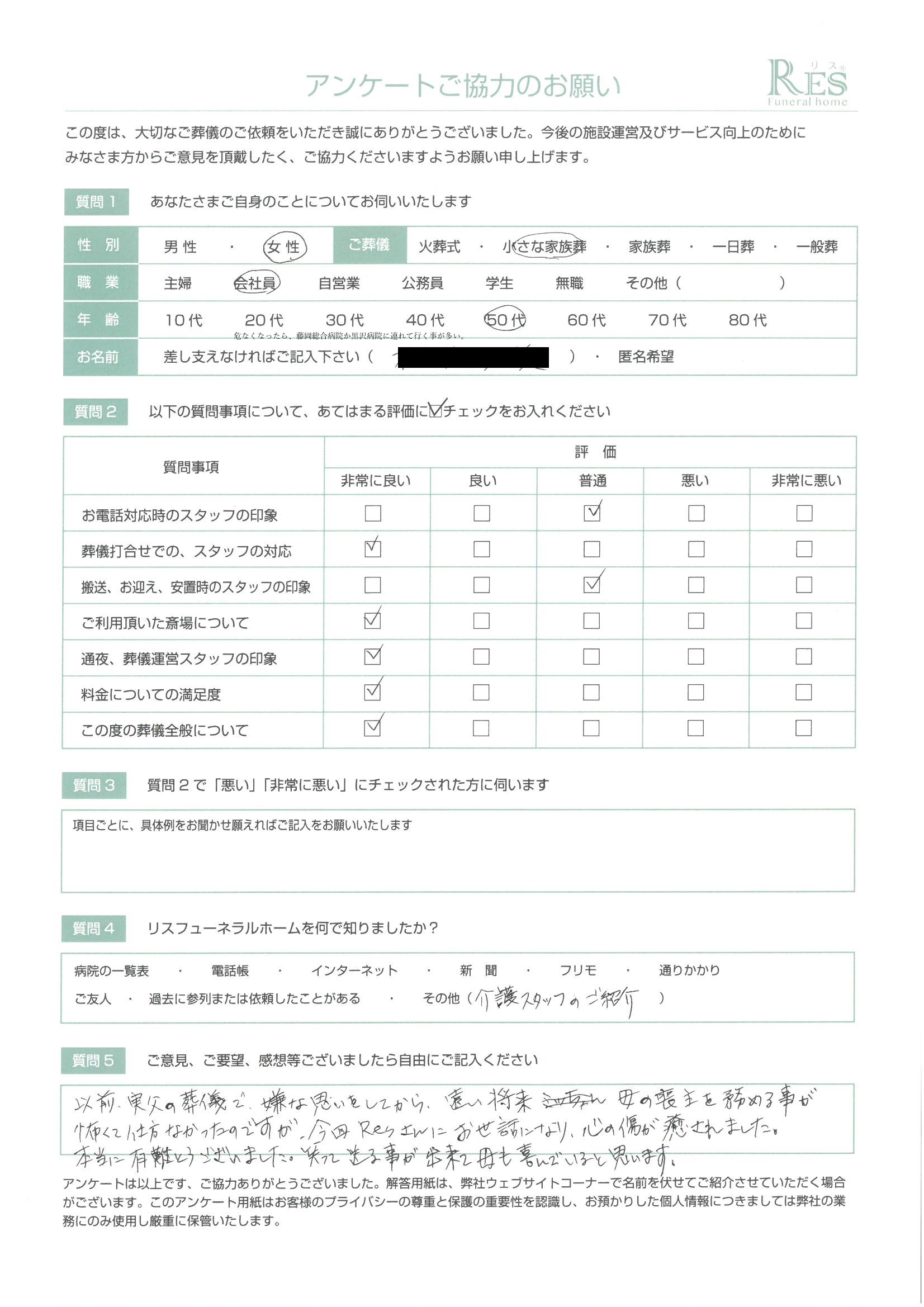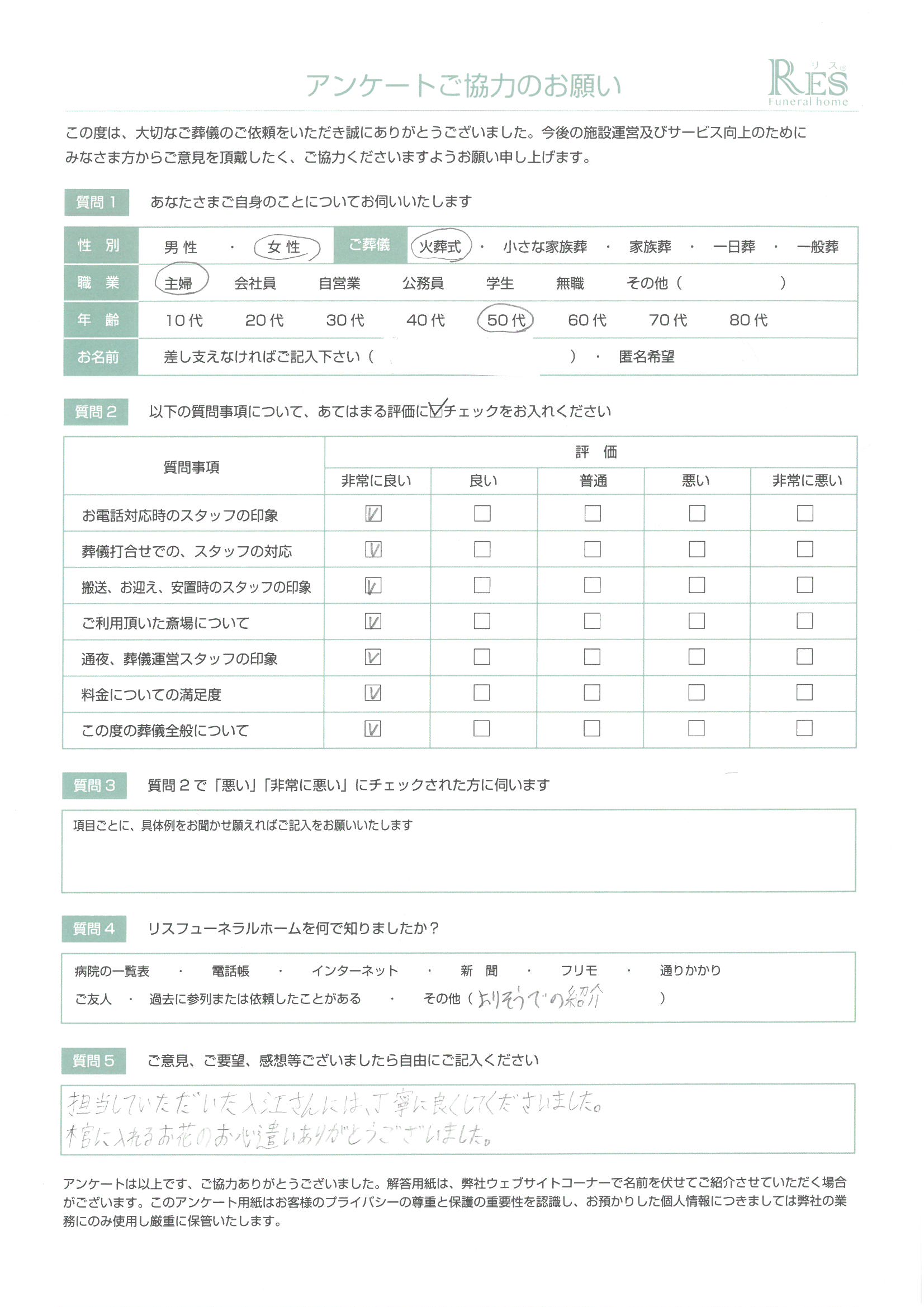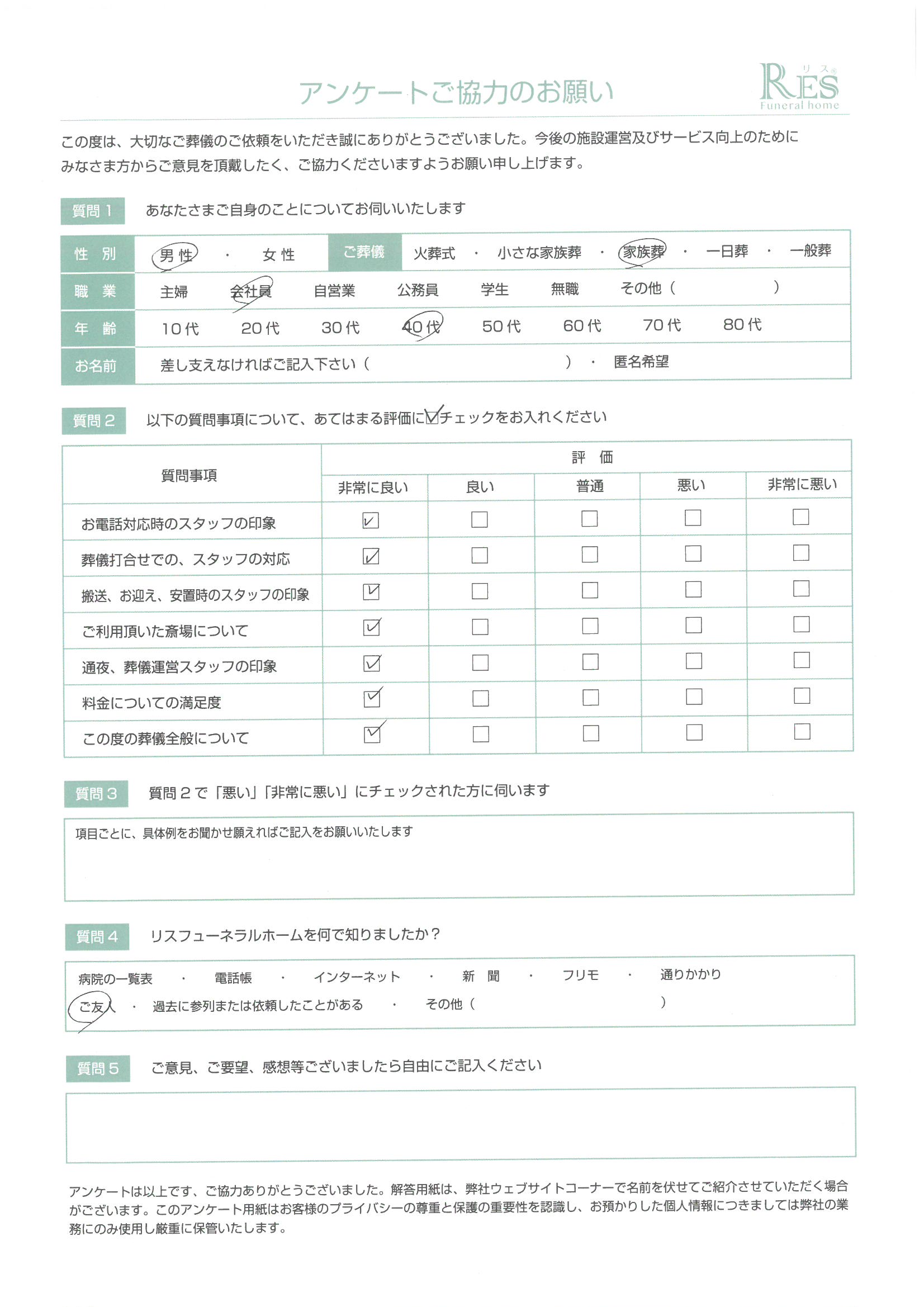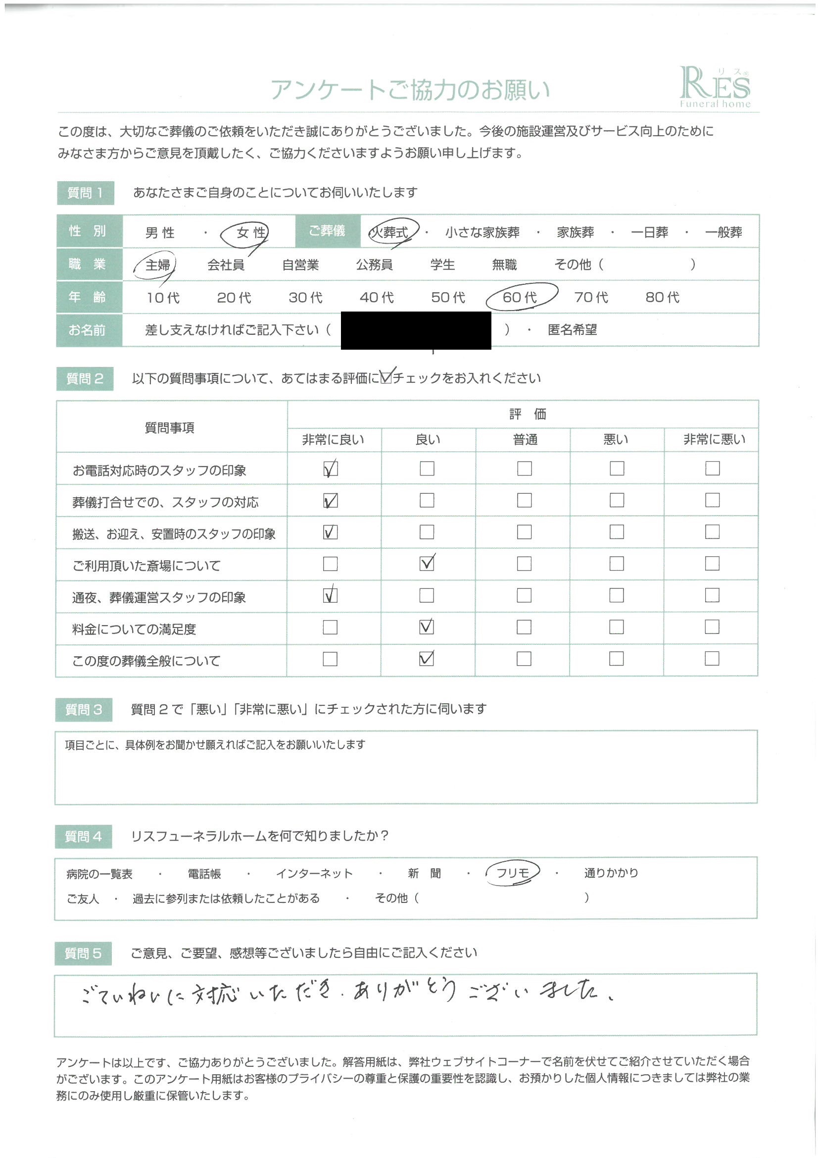 お客様の声 高崎市 T様 家族葬(一日葬)